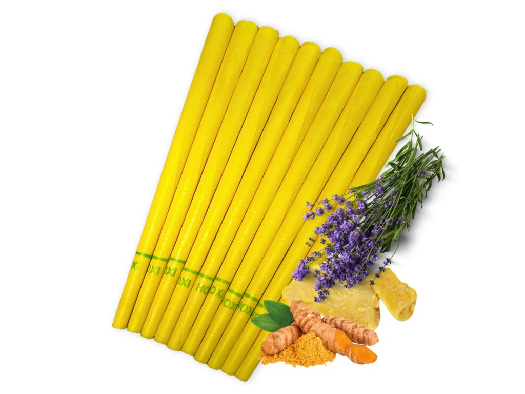 Tělové svíce HOXI® s levandulí jsou ručně a s péčí vyráběny v České republice z kvalitního bavlněného plátna, včelího vosku, protizánětlivé kurkumy a esenciálního oleje levandule. Díky kónickému tvaru a optimalizované délce zajišťují maximální komfort i efektivitu při aplikaci. Každá svíce je opatřena ochranným filtrem z gázy.