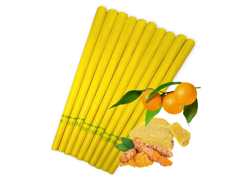 Tělové svíce HOXI® s mandarinkou jsou ručně vyráběny z kvalitního bavlněného plátna, včelího vosku, protizánětlivé kurkumy a esenciálního oleje mandarinky. Díky pečlivě navrženému kónickému tvaru a optimalizované délce zajišťují komfortní a bezpečnou aplikaci. Každá svíce je opatřena ochranným filtrem z gázy.