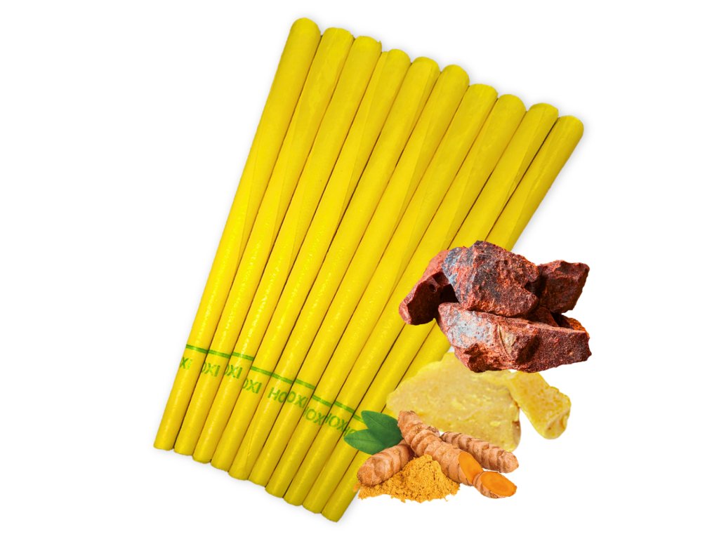 Tělové svíce HOXI® s včelím voskem a dračí krví jsou inspirovány tradičními postupy a přírodními surovinami. Dračí krev (Croton lechleri) je známá v přírodní medicíně již po staletí a využívá se zejména pro své unikátní působení na tělo i mysl. Včelí vosk dodává svícím jemnou vůni a stabilní hoření, zatímco kónický tvar zajišťuje optimální účinek.