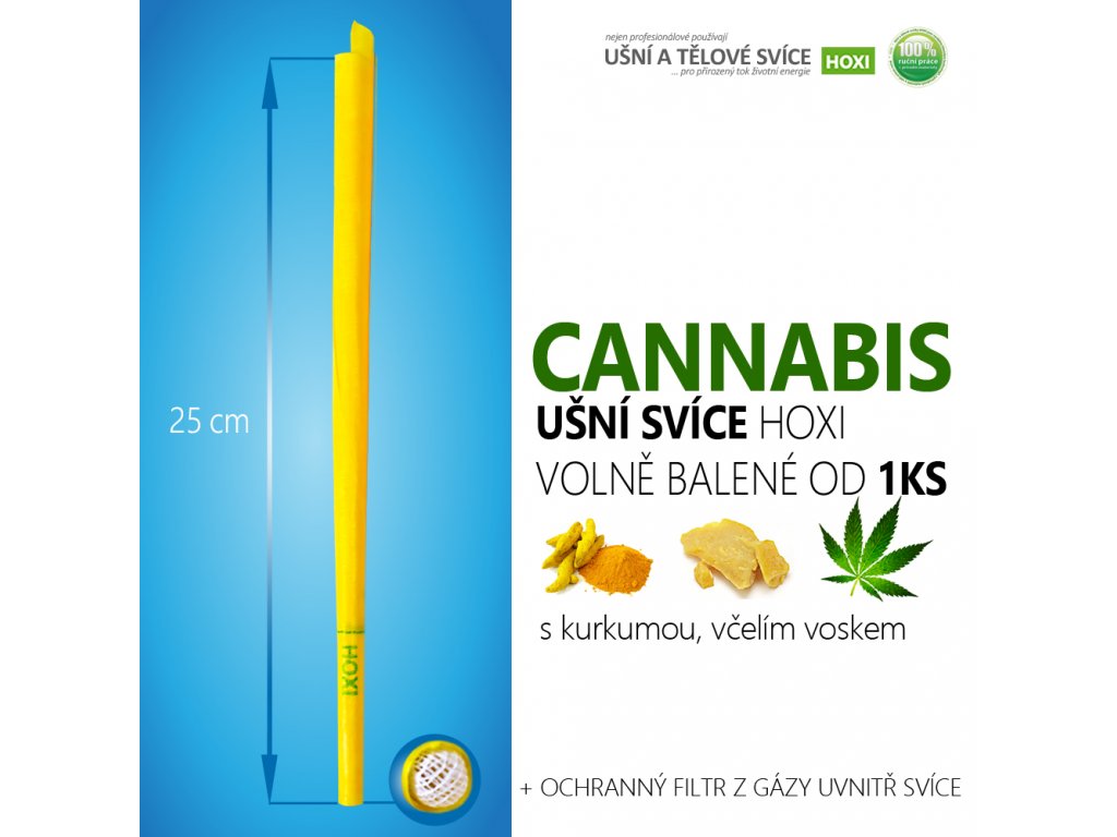 Volně balené ušní svíce HOXI® s CANNABISEM jsou vyrobeny ručně ze 100% bavlněného plátna, včelího vosku, protizánětlivé kurkumy a esenciálního oleje z cannabisu. Ušní svíce HOXI s cannabisem jsou kónického tvaru s optimalizovanou délkou pro co nejlepší účinnost. Každá ušní svíce HOXI® s cannabisem je opatřena ochranným filtrem z gázy pro větší bezpečnost.