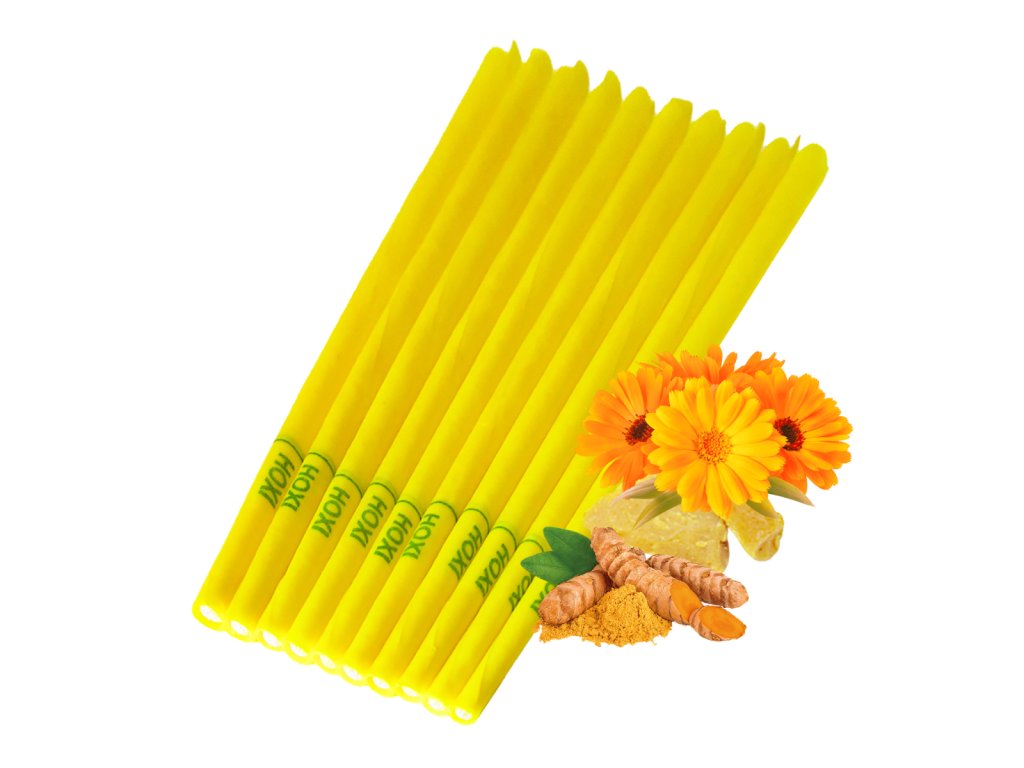 Volně balené ušní svíce HOXI® s měsíčkem jsou vyrobeny ručně ze 100% bavlněného plátna, včelího vosku, protizánětlivé kurkumy a esenciálního oleje z měsíčku. Ušní svíce HOXI® s měsíčkem jsou kónického tvaru s optimalizovanou délkou pro co nejlepší účinnost. Každá ušní svíce HOXI® s měsíčkem je opatřena ochranným filtrem z gázy.